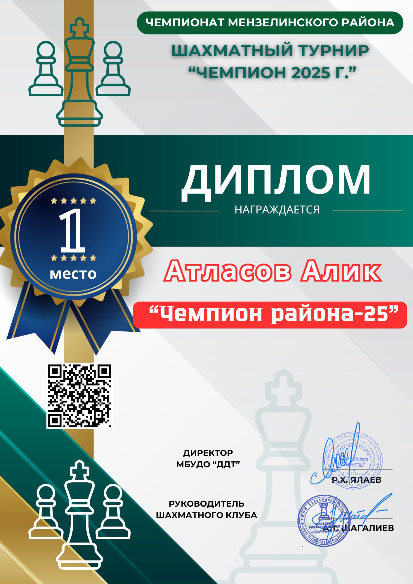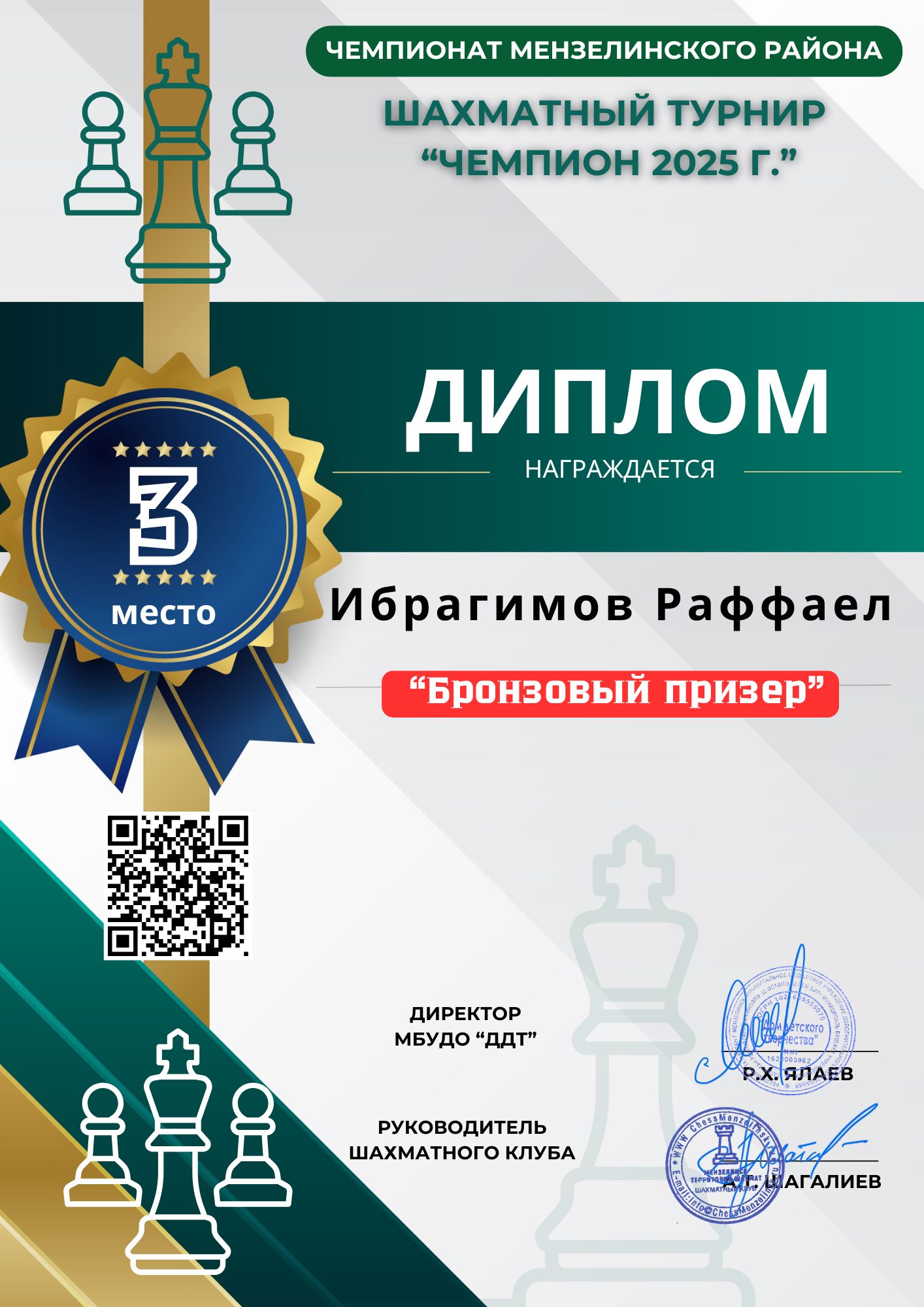 2025.07.19| г. Мензелинск 3 место| Общий Зачет| Первенство РТ по шахматам Фишера среди любителей" Атласов Алик