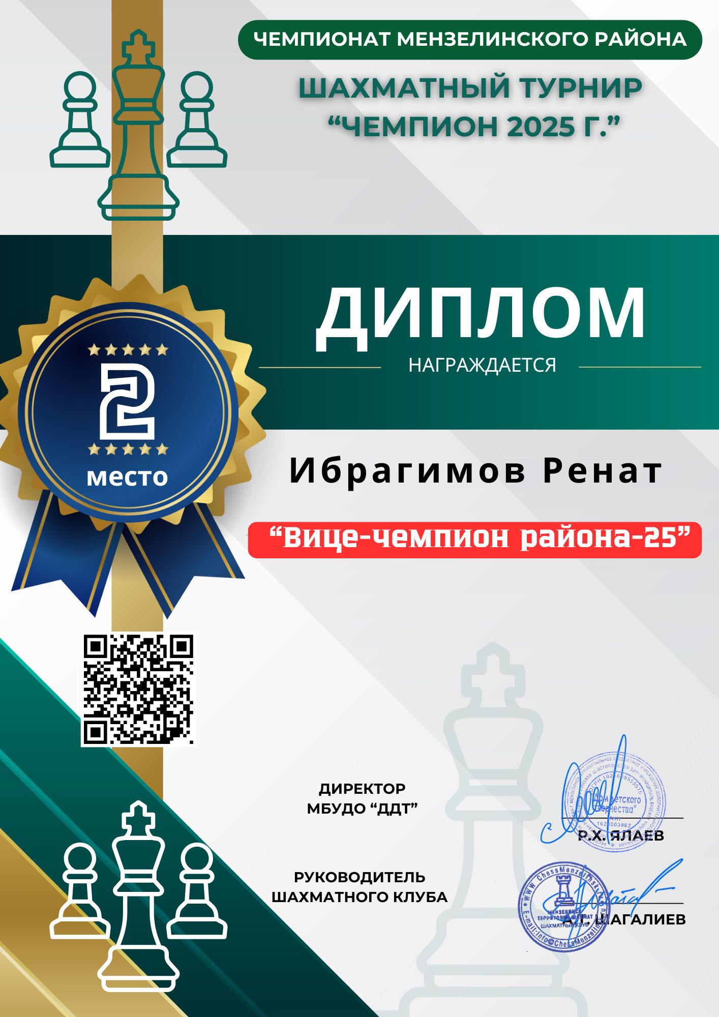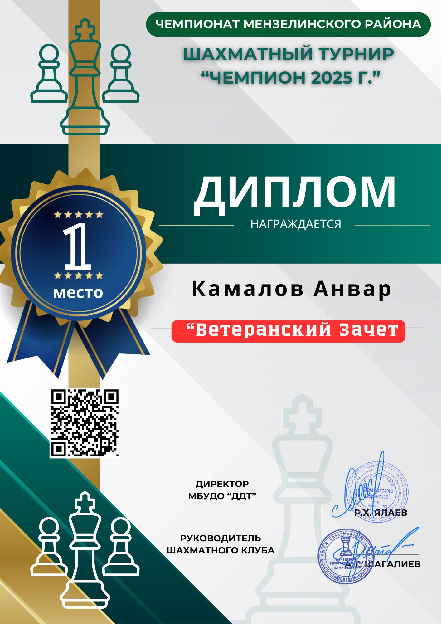 2025.07.19| г. Мензелинск 2 место| Общий Зачет| Первенство РТ по шахматам Фишера среди любителей" Камалов Анвар |