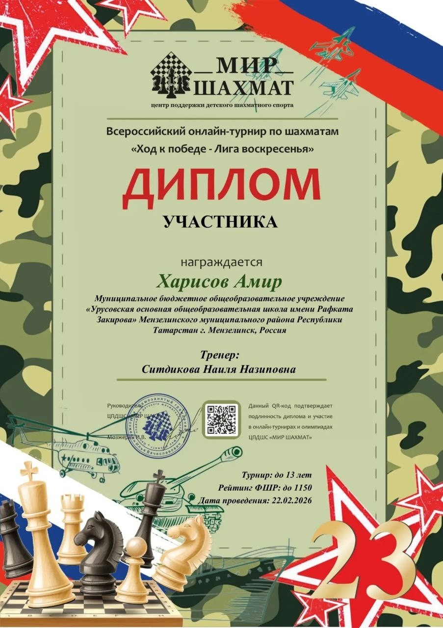 22 февраля 2026 г. юные шахматисты школы попробовали свои силы в престижном Всероссийском турнире «Ход к Победе — Лига Воскресенья» от Центра поддержки детского шахматного спорта «Мир Шахмат».