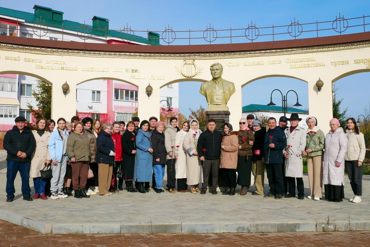 Коллектив Мензелинского театра и артисты Сибайского государственного башкирского драматического театра имени А. Мубарякова, которые сейчас находятся у нас на гастролях, возложили цветы к бюсту этого великого человека.