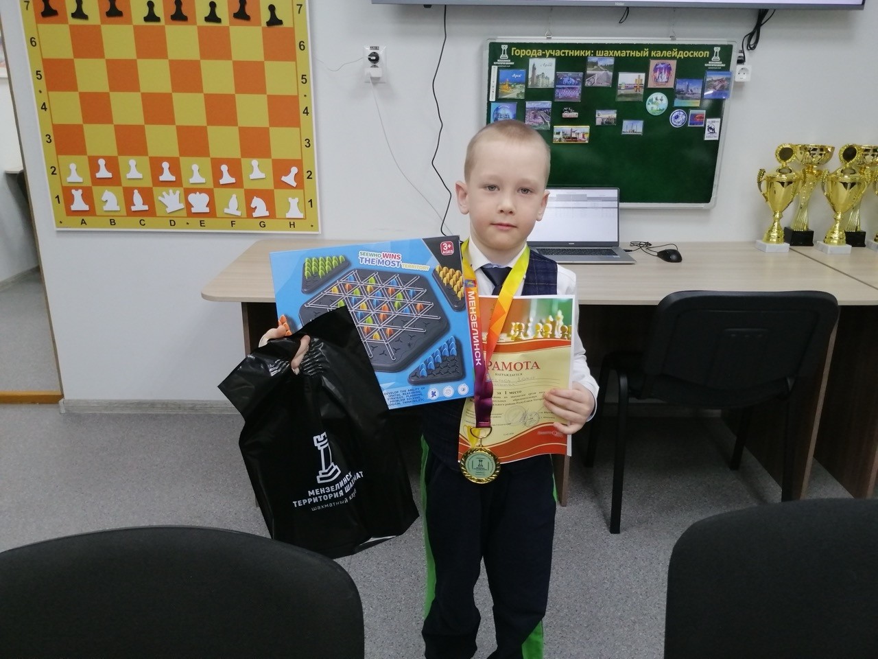 Все участники турнира получили подарки от отдела образования и шахматного клуба.